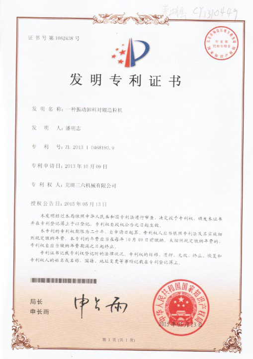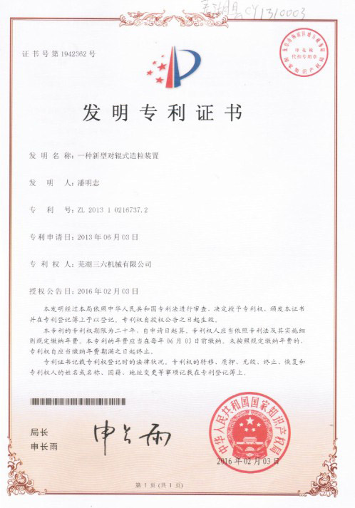 • 發(fā)明專(zhuān)利證書(shū)